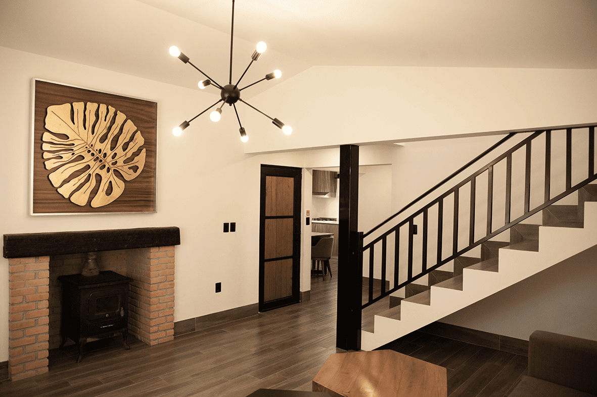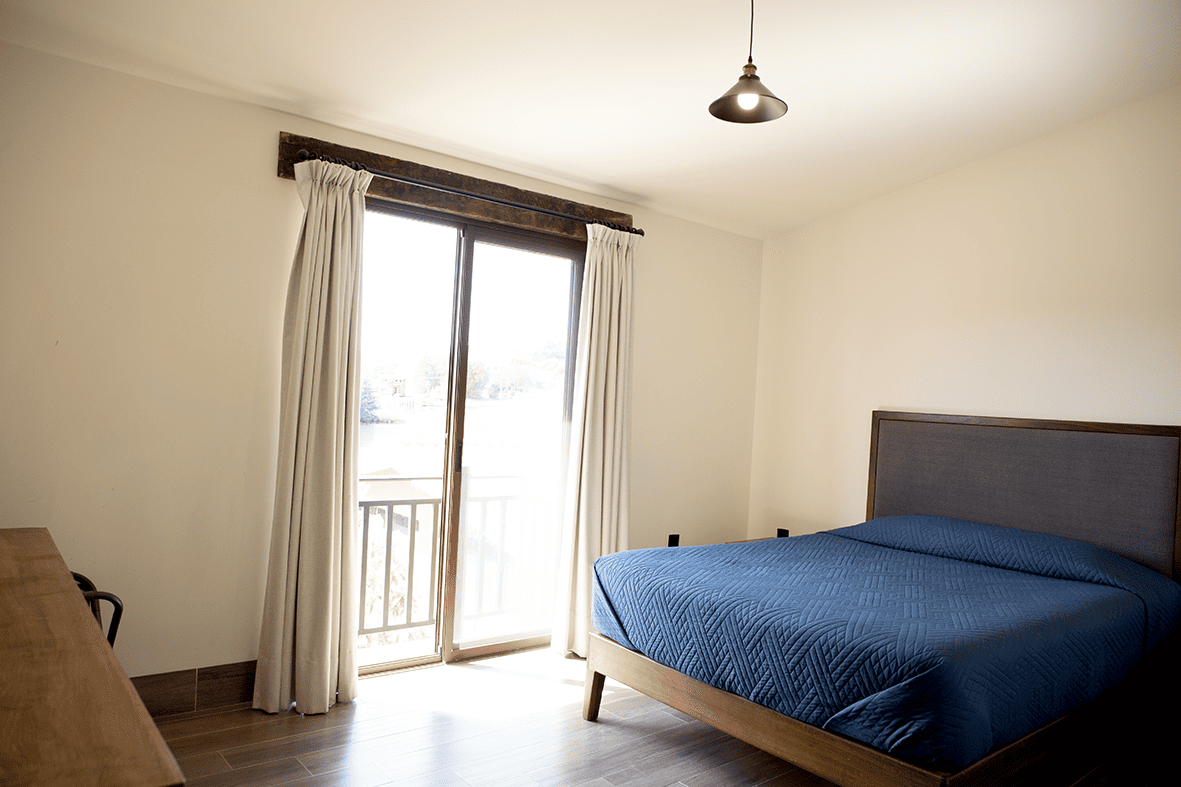 Cabaña de dos plantas con 2 habitaciones y hall de TV con capacidad de hasta 6 personas. Cuenta con con cocina, comedor, sala, terraza, baño completo y una recámara con cama Queen Size en la planta baja. En la planta alta pueden encontrar la segunda habitación con cama King Size, sala de TV con sofá cama tamaño matrimonial y baño completo. Como todas las cabañas tiene vista al lago.
