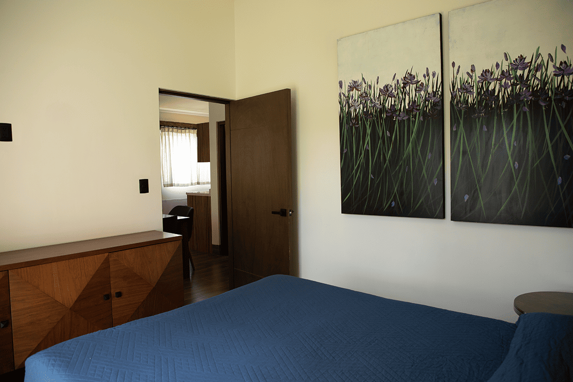 - Cocina con equipamiento básico (refrigerador, estufa, cafetera, batería y utensilios de cocina, cubiertos y vajilla)